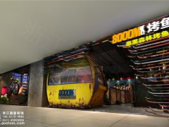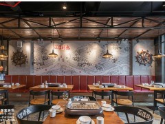 西湖区烧烤店装修公司,工业风烤鱼店装修设计案例-浙江国富装饰