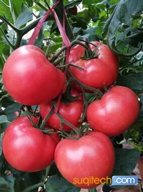 I.无限生长类型,中早熟,靓丽粉红色,果实大小均匀,单果重280-300克.