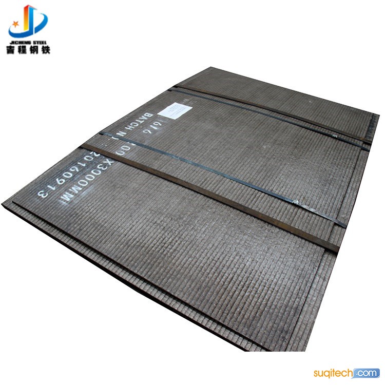 耐磨复合钢板的外观,钢板一面有堆焊焊道