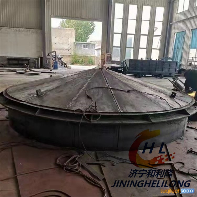 1、防爆盖采用锥形结构分四个部分联接而成,每部分由钢板、角钢组焊成型。