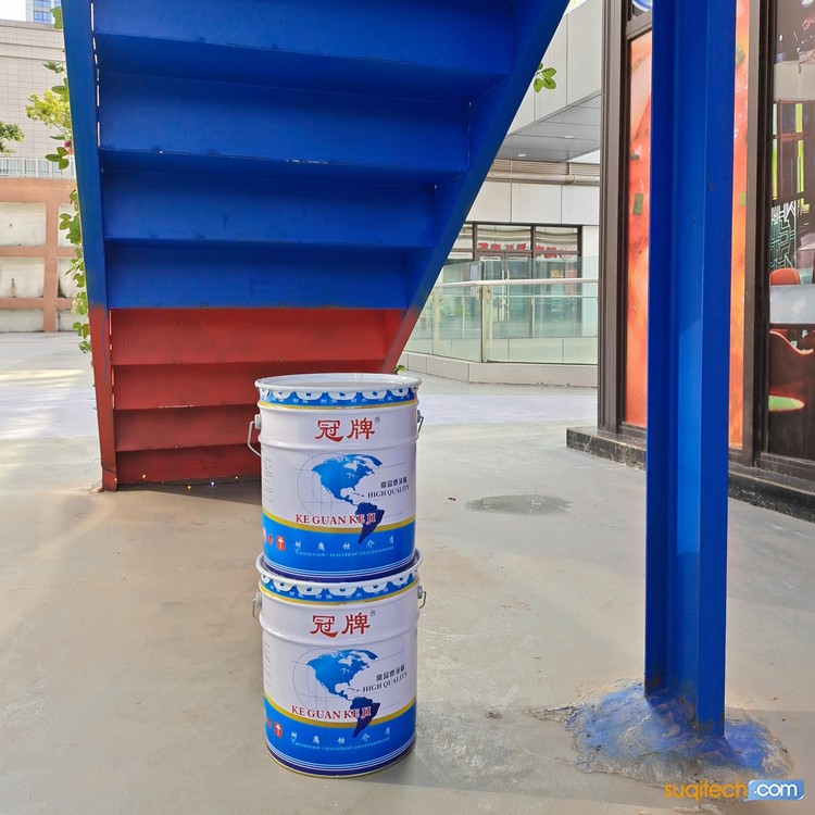 ⑸面涂施工:将环氧色漆及固化剂混合均匀后,可镘涂、刷涂、辊涂或喷涂,使其流平,获得平整均匀的表面涂层。