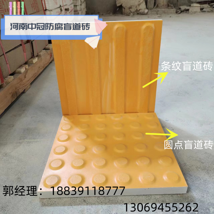 全瓷盲道砖由圆点提示盲道砖和条形行进盲道砖组成,产品常用颜色为黄、灰色。