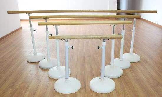 1.移动式舞蹈把杆:可以随便移动使用,适用于临时场地,如舞台、临时训练等,可以通过升降杆来调整把杆高度。