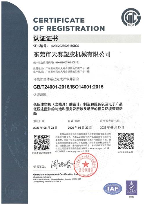 专家组对低压注胶方案专业提供商东莞天赛的综合管理水平、管理体系运行情况以及现场工作场所等内容进行了认真仔细的检查和现场审核。专家组成员一致认为,东莞天赛的各项审核项目均达到了环境管理体系的规定标准,批准通过认证审核,并取得国家标准认证证书。