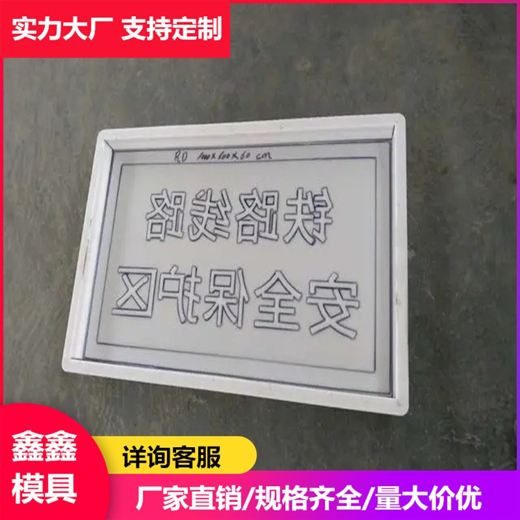 保定鑫鑫建材模具厂铁路AB桩模具有严格的尺寸要求 铁路A桩模具尺寸:90*45*10cm,铁路A桩模具正面刻着“铁路线路安全保护区”,背面刻着“铁路徽,地埋400mm”。其中A型标桩采用钢筋混凝土板制作而成,直接埋入土层中,沿着铁路保护区边界大概200m左右埋设一个,特殊地点可酌情增加或减少。B桩是采用钢筋混凝土立柱及标牌制作埋设于混凝土基础中,B桩为辅助型,主要适用于人员活动频繁地段,桥隧两段等醒目地点。