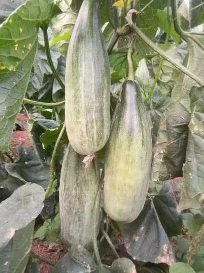 甜瓜种类中的绿皮甜瓜代育品种,早中熟种,生育期85天。果实长锥形,脐端大,柄端稍细而尖,弯曲似羊角。单瓜重650克左右,果形指数2.1。果皮灰绿,肉色淡绿,肉厚2厘米,质地松脆,汁多清甜,含糖量11%,品质中上。