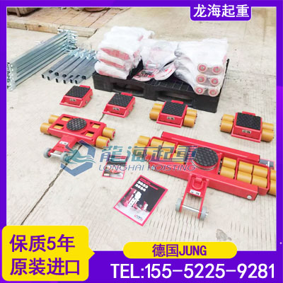 德国JUNG组合式搬运地坦克,由一台转向和两台直行搬运车组成,可直行可转向,可据设备的体积重量按需增配后车,适合大型重型设备搬运。轮子内含精密轴承外涂有耐用涂层,不伤地面的同时阻力更低,是可以人力推动行走的搬运车。