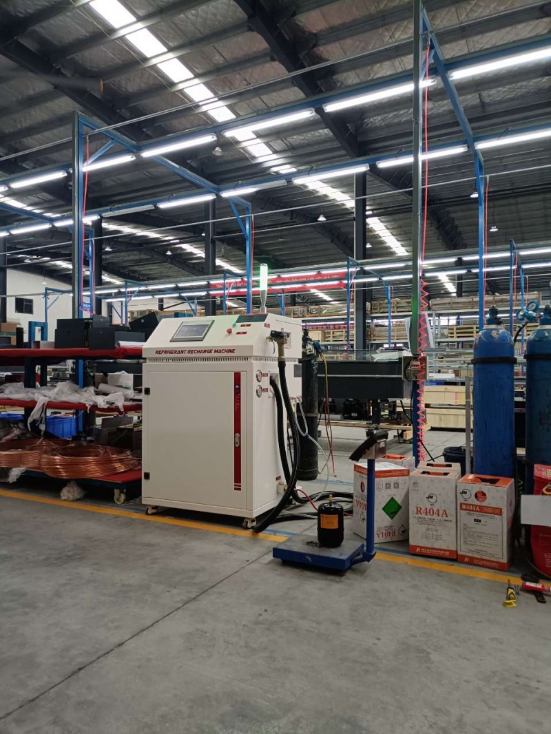 春木冷媒加注机应用于大型商超冷藏柜、展示柜生产线