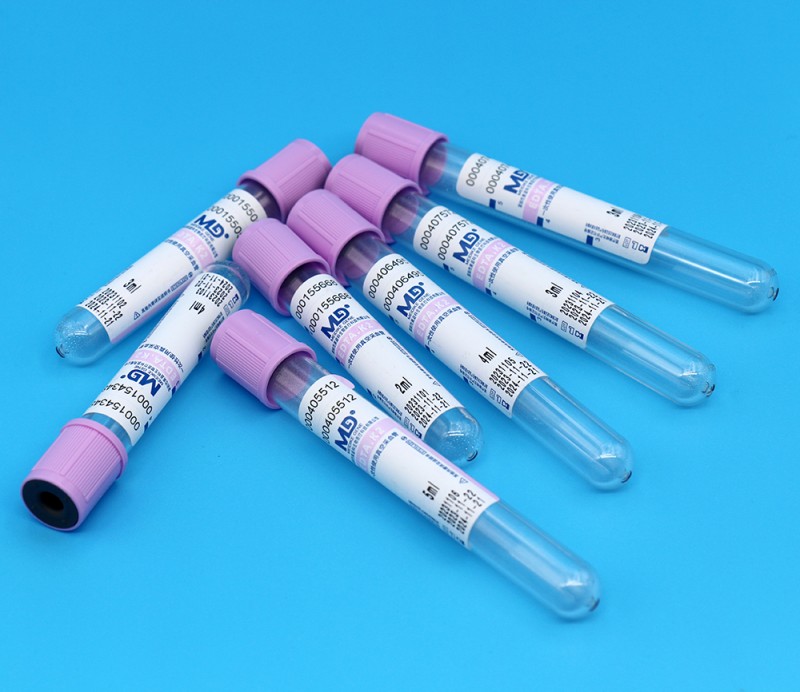 采血管内含有抗凝剂EDTA-K2(乙二胺四乙酸二钾),在血常规检测中EDTA抗凝剂与其他抗凝剂比较而言,对血球的凝集及血细胞的形态影响较小。EDTA可以与血液中的钙离子结合,从而阻止血液凝固,这种采血管采集的血液样本适合用于血型检测,血细胞计数、血红蛋白测定等血常规检查。