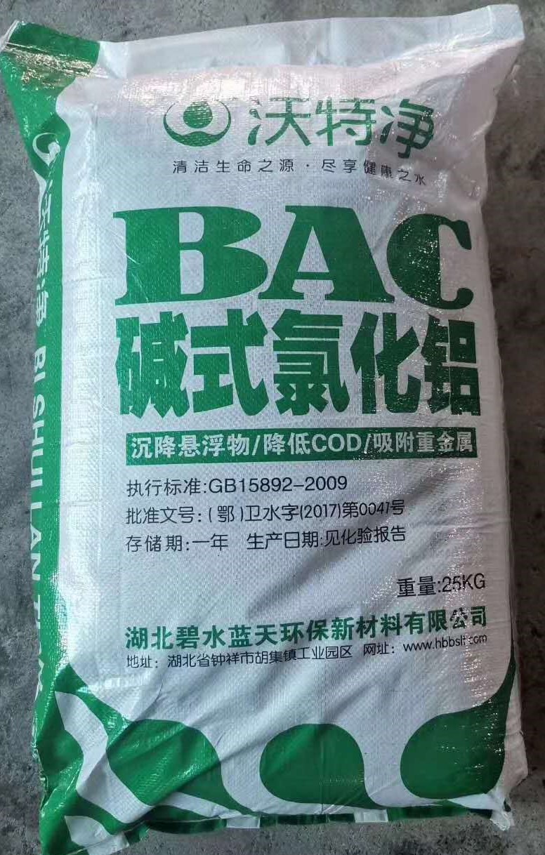 碱式氯化铝,简称聚铝,英文缩写为PAC,无机高分子水处理药剂。类型分为生活饮用水用和非生活饮用水用两种,分别执行不同的相关标准。外观形态分为液体和固体两种。由于原料所含成分不同,外观颜色有差异性,应用效果也有差异性。