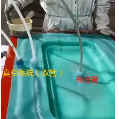 真空导入工艺采用硅胶制作真空袋辅助成型,液体硅胶可以用于机器喷淋或者手工刷胶,硅胶操作简易,只需按照重量配比混合均匀,经过真空脱泡后再借助工具在模具上涂刷硅胶,硅胶真空袋厚度一般涂刷三层,需要加一层增强布,加强硅胶的强度。常温25℃,硅胶4个小时左右就能完全固化,也可以通过加热加速固化。