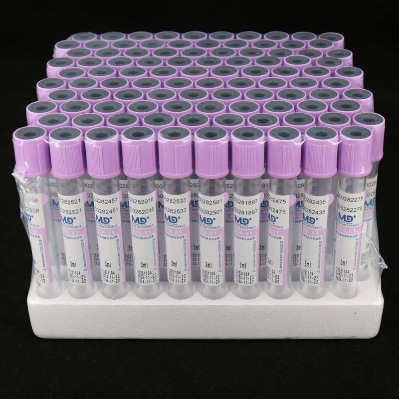 采血管内含有抗凝剂EDTA-K3(乙二胺四乙酸三钾),在血常规检测中EDTA抗凝剂与其他抗凝剂比较而言,对血球的凝集及血细胞的形态影响较小。EDTA可以与血液中的钙离子结合,从而阻止血液凝固,这种采血管采集的血液样本适合用于血型检测,血细胞计数、血红蛋白测定等血常规检查。