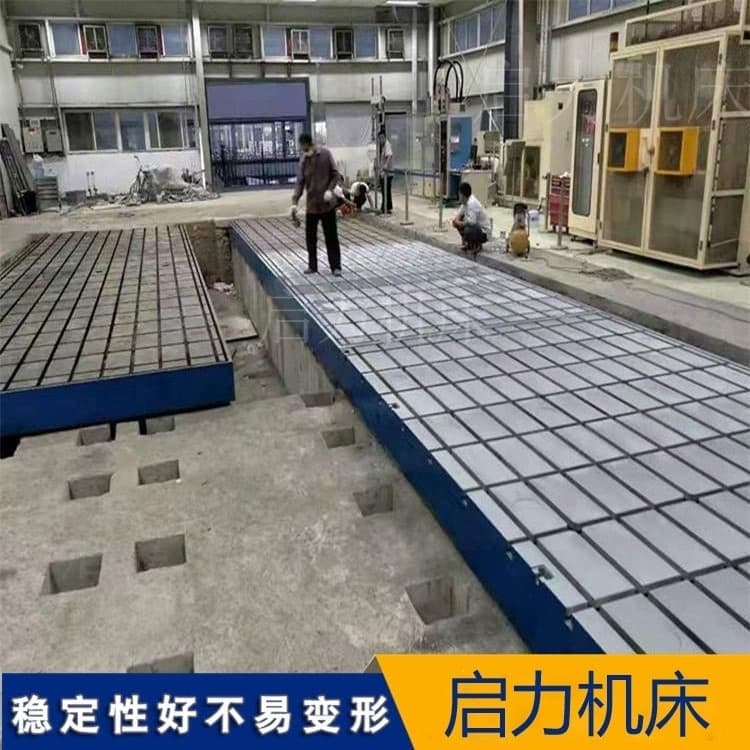 结构设计需适应焊接工装的定点需求,平台应预留定点孔(直径16-20mm,公差H7),孔距误差≤±0.1mm,配合定点销实现工装快换装。为便于焊渣清理,工作面粗糙度可放宽至Ra6.3μm,边角采用5×45°倒角,避免尖锐边缘划伤操作人员。大型焊接件(长度≥5m)需选用拼接式平台,拼接处采用榫卯结构设计,确保承载后的平面度变化≤0.1mm/m。