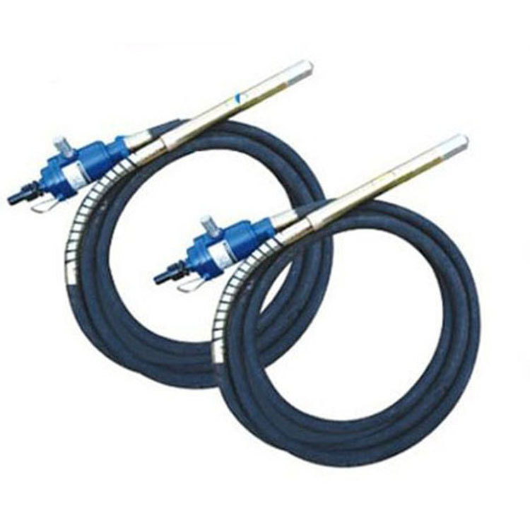 4、配套振动棒橡胶软管为65Mn钢丝管,棒头材质为合金和40Cr,棒头与软管连接处带合金护簧或加粗,比普通振动棒更加耐用。