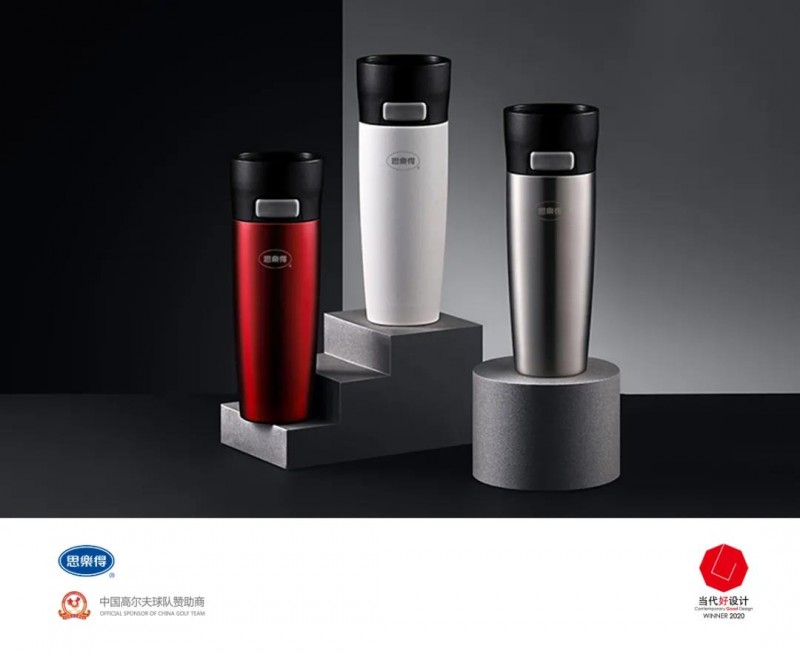 其型号为SVC-400H的不锈钢真空乐咖保温杯,外形新潮的保温杯,外观专li设计产品,专li号201530269138.7;新型杯盖结构,实用新型设计专li,专li号:201921949502.3,按键一按自动开启,一放自动闭合,轻松实现单手操作;360度出水设计,任意角度均可,操作简单,喝水更方便;防尘上盖旋转50度即可拆卸,便于充分清洁;杯底直径60mm符合车载直径要求,车载好伴侣;获得2020年度当代好设计奖。