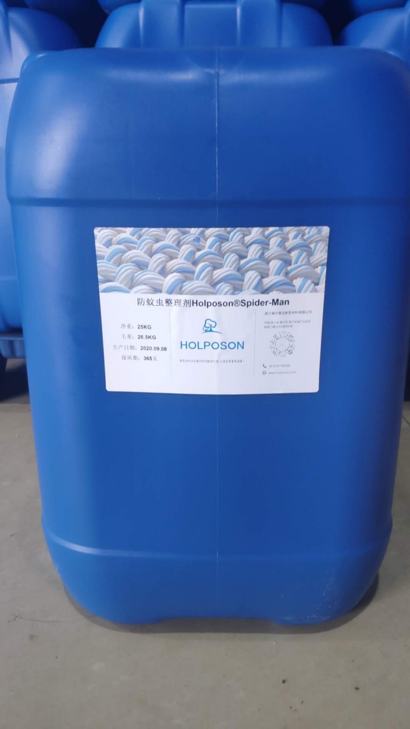 HOLPOSON® Spiderman也叫蜘蛛侠® 是由我司博士团队开发的驱避型防蚊虫整理剂,适用于各种规格的纺织品,如:棉,粘胶,涤纶,尼龙等天然、合成纤维及混纺织物。蜘蛛侠®主要成分为氯菊酯的防蚊整理剂,核心技术:微胶囊材料包裹氯菊酯制成氯菊酯微胶囊,可以提升氯菊酯的耐久稳定性,也可提升防蚊虫整理剂在纺织品上的耐水洗性能。