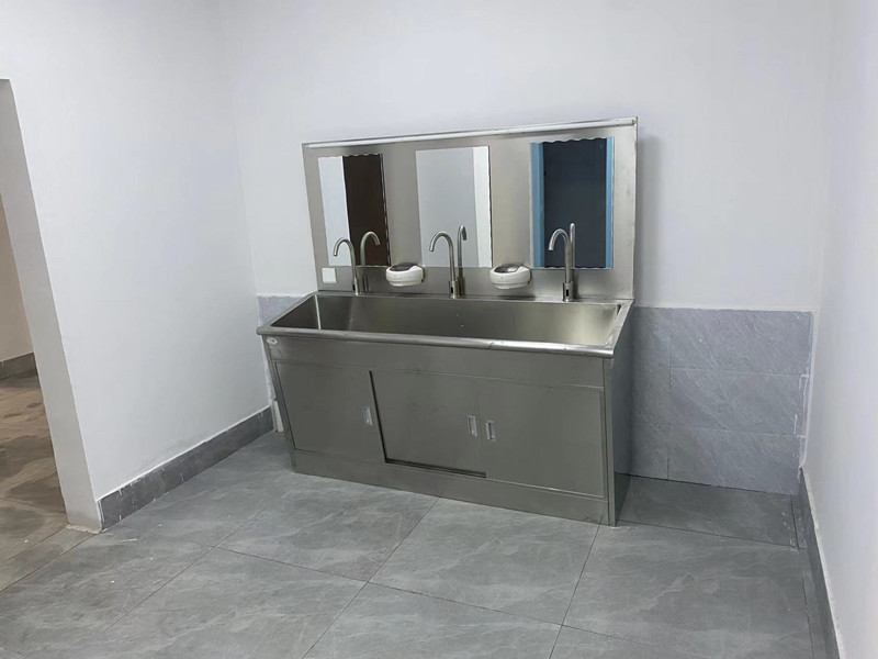 不锈钢洗手池出水方式分为:感应式、膝碰式、脚踏式