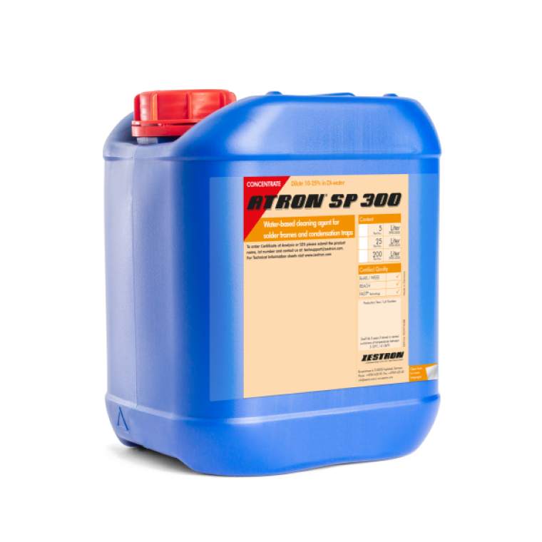 ATRON® SP 300 是一款水基碱性清洗剂,特别设计用于清除旋风器、冷凝管和焊接夹具上烘焙过的助焊剂残留物。 ATRON® SP 300 可使用于单槽空气辅助清洗设备中,或是用于清洗容器和管道的外部装置中。