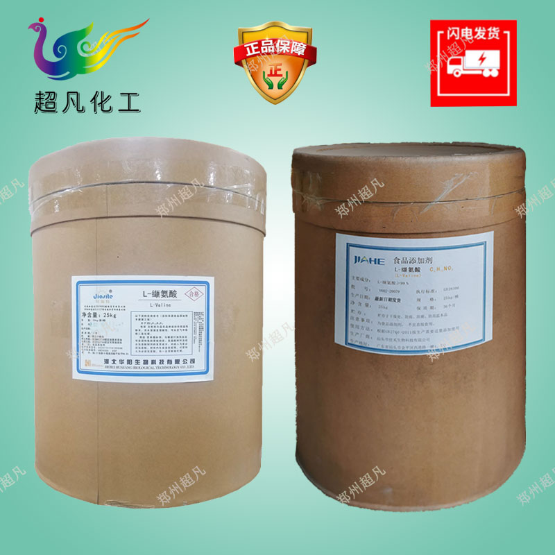 【产品包装】L-缬氨酸内用两层聚乙烯塑料袋,外用纸板圆桶包装。净含量25kg。