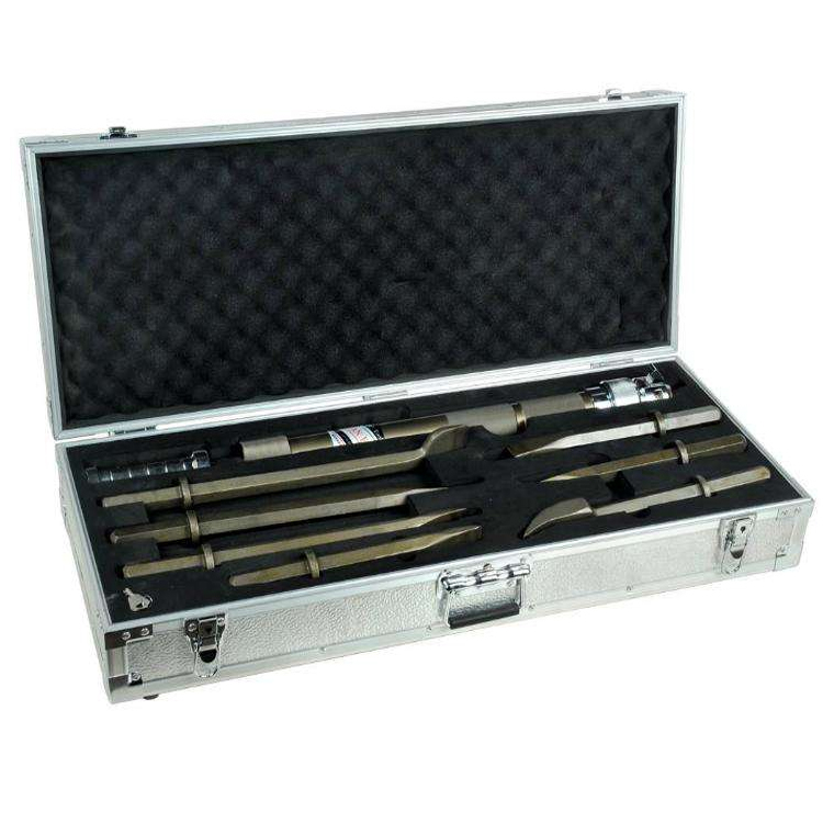 手动破拆工具组是一种抢险救援所用的破拆工具,具有无需额外动力,噪音小,效率高,操作灵活等特点。主要应用于消防、地震、武警、公安等抢险作业,适用于各种介质,配有7种不同凿头。可快速有效打通坍塌物体、岩石、砖和混凝土阻隔墙。手动破拆工具组集撬、拧、凿、切割、劈砍、拔、敲、撕、冲等手动破拆功能于一体,冲击头采用高强度工具钢,可破门撬锁、凿穿砖石、混凝土结构墙壁及楼板、切割汽车金属片及复合材料。此工具适合各种抢险救援现场,尤其适用于地震初期的救援工作。Kuangan002