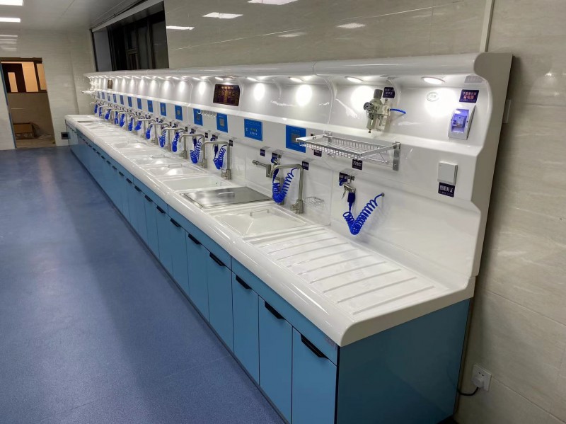 迪新内镜清洗工作站是严格按照卫生部《内镜清洗技术操作规范(2016年版)》的要求设计,结合国外先进技术及工艺,产品采用人性化及标准化设计、选材精良考究、配置灵活性强、自动化程度高、操作简洁方便、使用安全可靠、性价比高、清洗效果显著,广泛适合国内不同规模医疗机构开展内镜及其它器械清洗工作,是一种为内镜诊疗工作中对内镜清洗的设备。、外型美观,典雅、豪华、配置齐全、多槽分级及干燥台分段控制,全镜浸泡清洗,整个过程流水化,层级分明不受干扰材质为304不锈钢制成,具有良好的抗冲击效果,无缝角、耐酸碱;抗氧化,表面平滑光泽,易清洗等特点。清洗流程:初洗---酶洗---次洗---浸泡---末洗---干燥---储存。