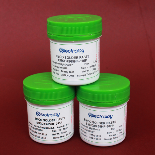 | EMCO #265HF-315P | 雅拓莱的EMCO #265HF-315P免洗焊膏是使用松香为基础的焊膏,它拥有宽广的印刷操作范围和特别长的停歇时间和可印刷期。 其柔软的非粘着残留物提高了在线测试的可靠性,减小了清洗探针的频率。 |