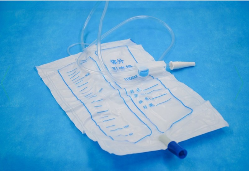 【性能结构】本品由聚氯乙烯制成,由袋体、软管、吊耳、排液开关、管卡和锥形接头组成。【适用范围】临床上与引流管或导尿管连接,收集病人体内废液、尿液。