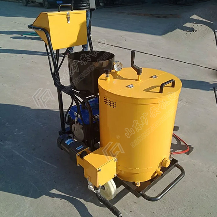 手推马路灌封机的作用是在对裂缝进行开槽与清理步骤之后,对裂缝进行加热,并用灌缝枪把密封胶均匀地灌入槽内,完成补缝工作。Kuangan002