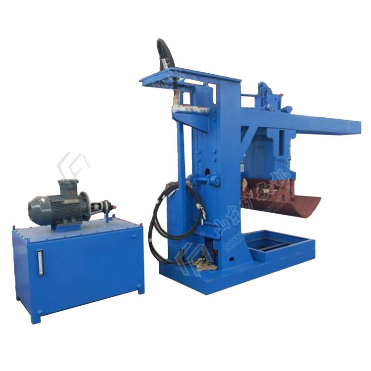 抓斗式液压矿车清车机由泵站提供动力,由升降油缸、推移油缸调整工作机构位置,使工作机构处于矿车的正上方,然后开启升降油缸及挖掘油缸,使铲板沿矿车侧板下降并合拢,铲除粘底物,从而达到清车的目的。Kuangan002