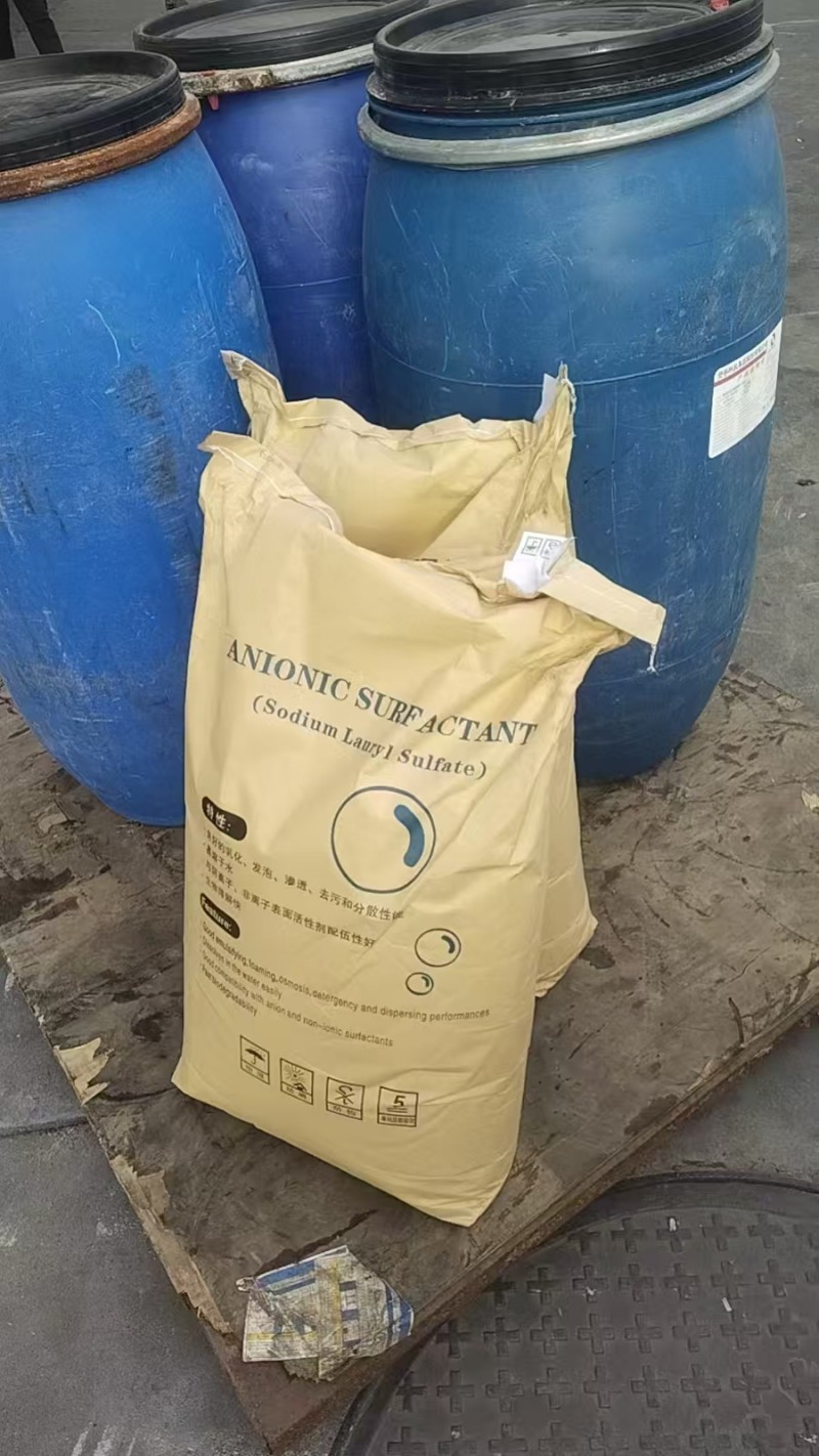 十二烷基硫酸钠是一种阴离子表面活性剂,属于硫酸酯类表面活性剂的典型代表,简称SDS,又叫AS、K12、椰油醇硫酸钠,月桂醇硫酸钠、发泡剂,市场上销售的商品通常为白色至微黄色结晶粉末,无毒,微溶于醇,不溶于氯仿、醚,易溶于水,与阴离子、非离子复配伍性好,具有良好的乳化性、起泡性、发泡、渗透、去污和分散性能、泡沬丰富,生物降解快,但水溶程度次于脂肪醇聚氧乙烯醚硫酸钠(简称AES)。对碱和硬水不敏感,但在酸性条件下稳定性次于一般磺酸盐,接近于AES,长期加热不宜超过95℃,刺激性在表面活性剂中属于中等水平。十二烷基硫酸钠是洗洁精的主要成分。常用于DNA提取过程中,使蛋白质变性后与DNA分开。通常被误读为十二烷基磺酸钠。作为发泡剂被广泛应用于牙膏、肥皂、浴液、洗发香波、洗衣粉,以及化妆品中。95%的个人护肤用品和家居清洁用品中都含有十二烷基硫酸钠。
