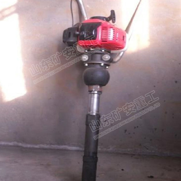 捣固镐是一种适用于铁路线路道床石喳捣固作业的手提、便携式专用工具。它是由汽油机作为原动力,通过离心式离合器、偏心轴、橡胶减震器、拖动镐体产生高频扰动力,使枕下石喳重新排列密实,从而实现对道床石喳捣固的目的。Kuangan002