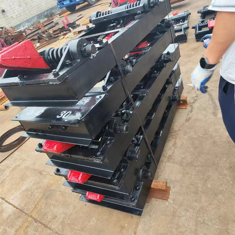 手动阻车器其任务是将运动中的矿车停止在某一要求的固定地点,和推车机、摇台、安全门等设备相互配合,使操车作业达到机械化和自动化的目的。手动阻车器按线路设置可分为前后阻车器两种。前阻车器用于待装矿车的限位,后阻车器则用于阻止列车。kuangan002