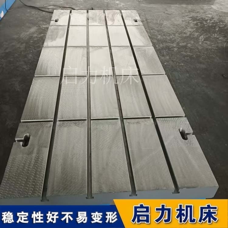 其次,合理的结构设计,是抗振稳场的核心。针对大型永磁电机特点,试验铁底座通常采用加厚箱体结构,受力更均匀;台面预留标准 T 型槽,方便固定电机、工装、传感器等装置,锁紧牢固不位移。部分高要求场景还可采用拼接式结构,既能满足超大尺寸需求,又能保证整体稳定性,安装调试更灵活。结构越合理,越能分散压力、抵消振动,测试现场自然更稳。