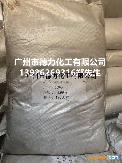 产品名称与性质:磺基水杨酸,5-磺基水杨酸,含量99%,浅灰色粉末结晶体。