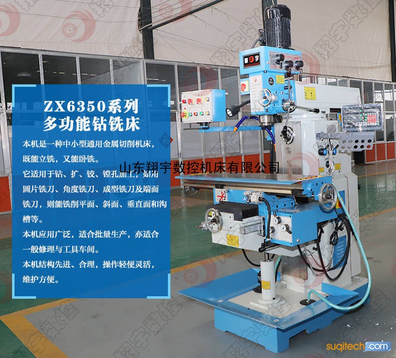ZX6350钻铣床用于金属材料和其它材料进行钻、铣、镗、攻丝等多种切削,广泛应用于单件或成批生产的仪表工业、机械制造、建筑装饰和修配行业。