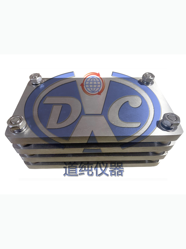 B型泡沫压缩变形器由平行钢板、垫片和紧固件组成,符合GB/T 6669-2008、ISO 1856-2000要求。在规定的温度下,使泡沫材料试样在一定的时间内维持恒定的变形,待试样恢复一段时间后,观察形变对试验厚度的影响。用试样的初始厚度与z终厚度之差与试样初始厚度之比的百分率表示该材料的压缩变形。