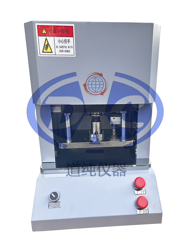 4、按“Up”控制开关,工作台向上运动,压盘与裁刀接触直到冲切完成标准试样。按“Down”控制开关,工作台向下运动回位,然后可以取出裁切好的试样。