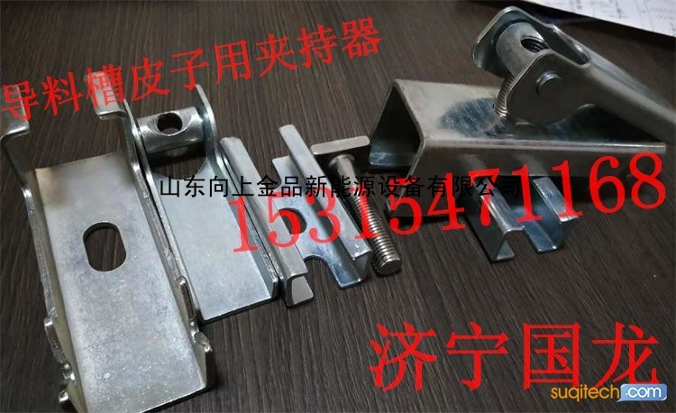 2、夹持器底座焊在导料槽侧帮外,滑道深入底座内,可使夹持器沿底座适当的左右移动。