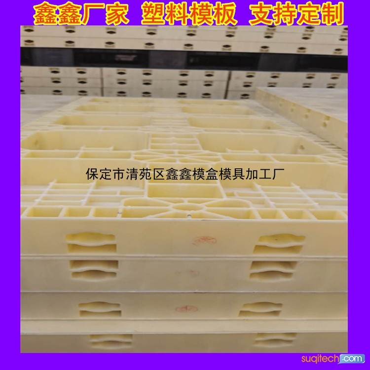 保定鑫鑫建材模具厂定制塑料模板。塑料建筑模板的脱模非常简单。模板的表面光滑,易于脱模,易于清洁和维护,不需要脱模剂,使用后的模板表面不粘水泥,不需要清洗模板;在相同的工作量下,施工效率比钢模板提高40%;与竹模板相比,在使用过程中无需使用钢钉即可将其固定,模板(例如墙和柱)也可以整体拆除,并逐层使用。劳动强度也大大降低。在相同条件下塑料建筑模板的组装时间更短,相同建筑面积的塑料建筑模板比传统模板约节省时间40%左右。塑料建筑模板的拆卸时间短。塑料建筑模板的热膨胀系数与混凝土相差甚远。浇筑完成后,混凝土随温度变化而固化。模板会自动从浇筑的混凝土中分离出来,只需轻敲即可轻松移除,工作时间也将大大节省。塑料建筑模板使用方便。塑料建筑模板的密度为1.2g/cm3,仅为钢的1/7,重量很轻。工人可以轻松地双手拿起915mm×1830mm的模板,携带非常方便。模板在使用过程中不会变形,不吸水,不需要用钢钉固定,可以大大提高施工效率,破损率小于2‰。