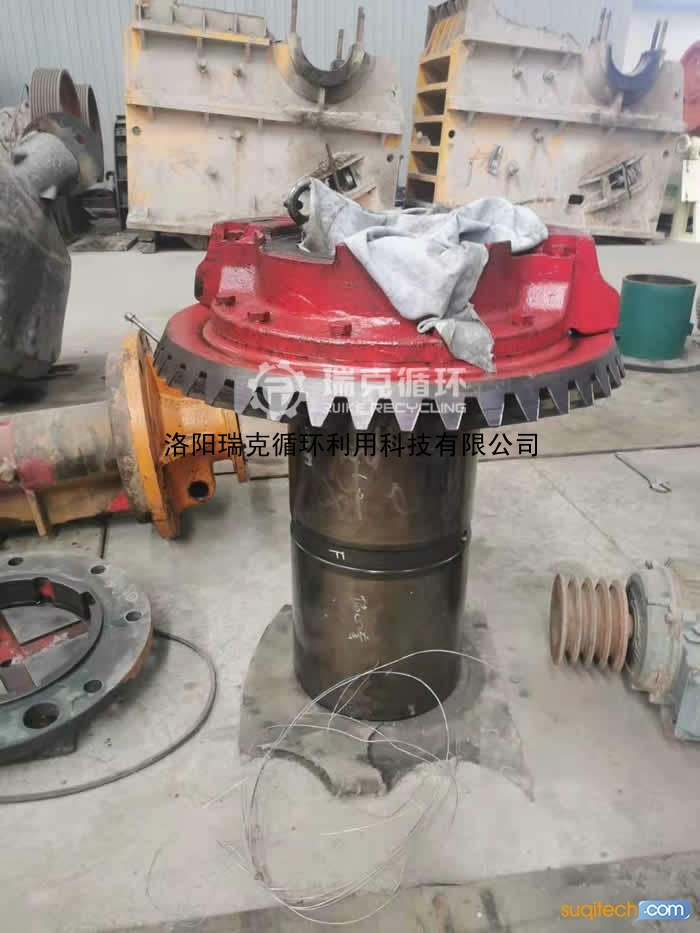 5、机架外侧焊接的钢板刨掉、将磨穿处补焊钢板;机架上部内锥面补焊、加工
