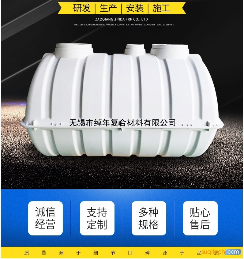 玻璃钢化粪池为整体形,质量轻、强度高,可根据场地需要自由组合安装。