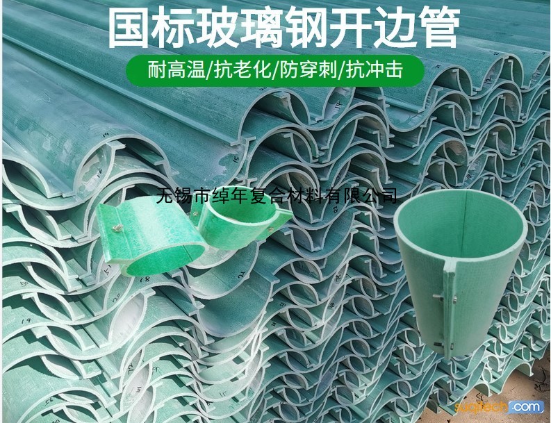 特点:玻璃钢开边管内外表面光滑,不生锈、不积垢、耐老化、耐腐蚀、施工方便,阻燃,机械强度高,适用范围广!