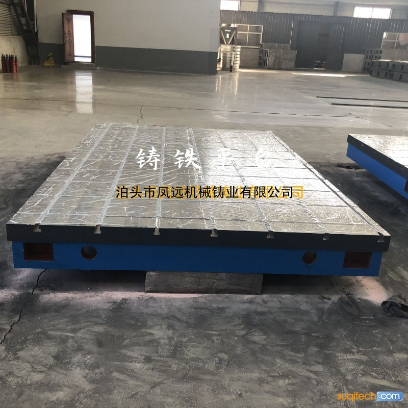 外观:铸铁平台为箱型筋板式,通常底部加强筋喷涂红色防锈漆,工作面边沿喷涂灰色油漆,边沿下部分喷涂蓝色油漆。也可以根据用户要求颜色喷涂。