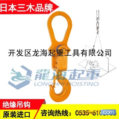 龙海起重销售日本NETSUREN品牌原装进口三木绝缘吊钩,载荷1~3吨,有效绝缘,防止触电,安全系数达5倍!龙海起重郑重承诺:日本NETSUREN三木鹰牌绝缘吊钩厂家货源,如有仿货以产品货值百倍赔偿!