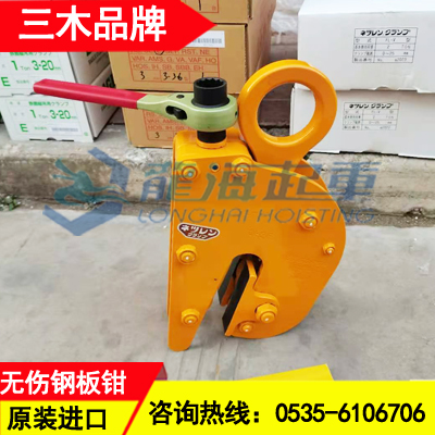 龙海起重原装进口:日本三木NETSUREN品牌无伤钢板钳:FL-V型无伤钢板钳,可用于不锈钢板、铝板、铜板、压力容器、复合钢板、带油漆钢板、有色金属板等无划痕吊装以及要求无碳钢污染作业环境中!5倍安全系数!