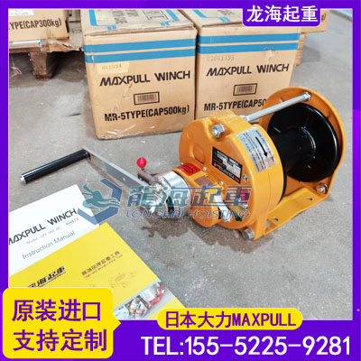 烟台开发区龙海起重工具有限公司销售日本进口MAXPULL大力手摇绞车,产品获取CE认证质量可靠;操作手摇力轻,机械效率高并设机械式自动刹车、双重安全机构。我公司郑重承诺:厂家货源,如有仿货以产品货值百倍赔偿!
