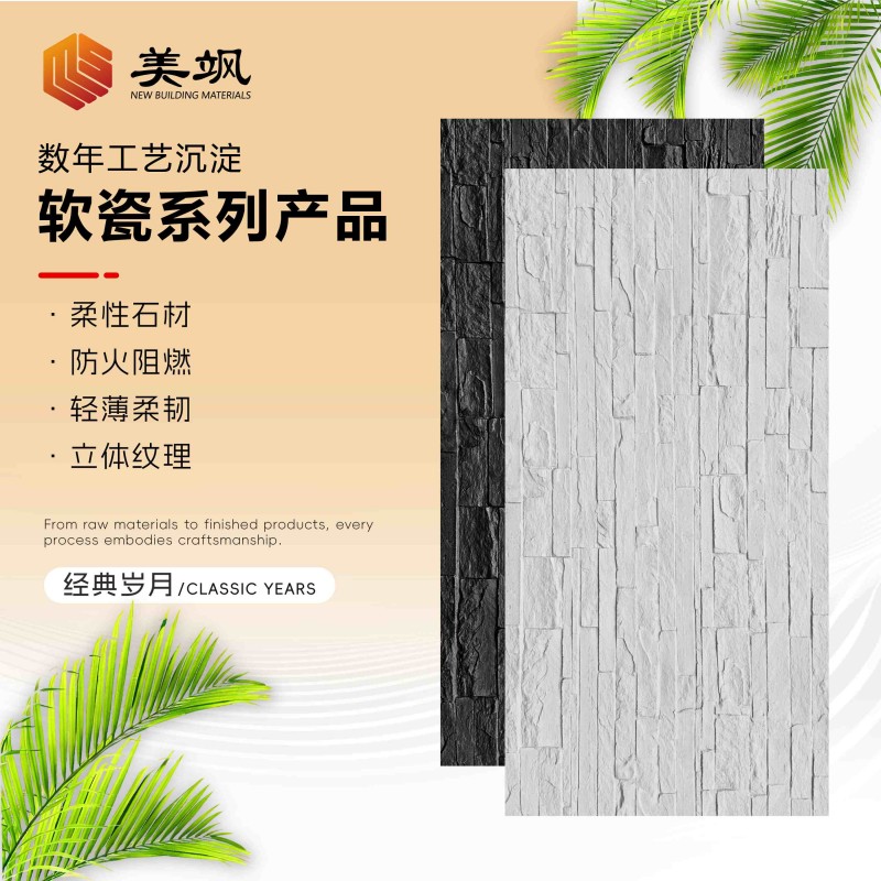 美飒软瓷岁月痕流水石柔性材料MCM内外墙装饰